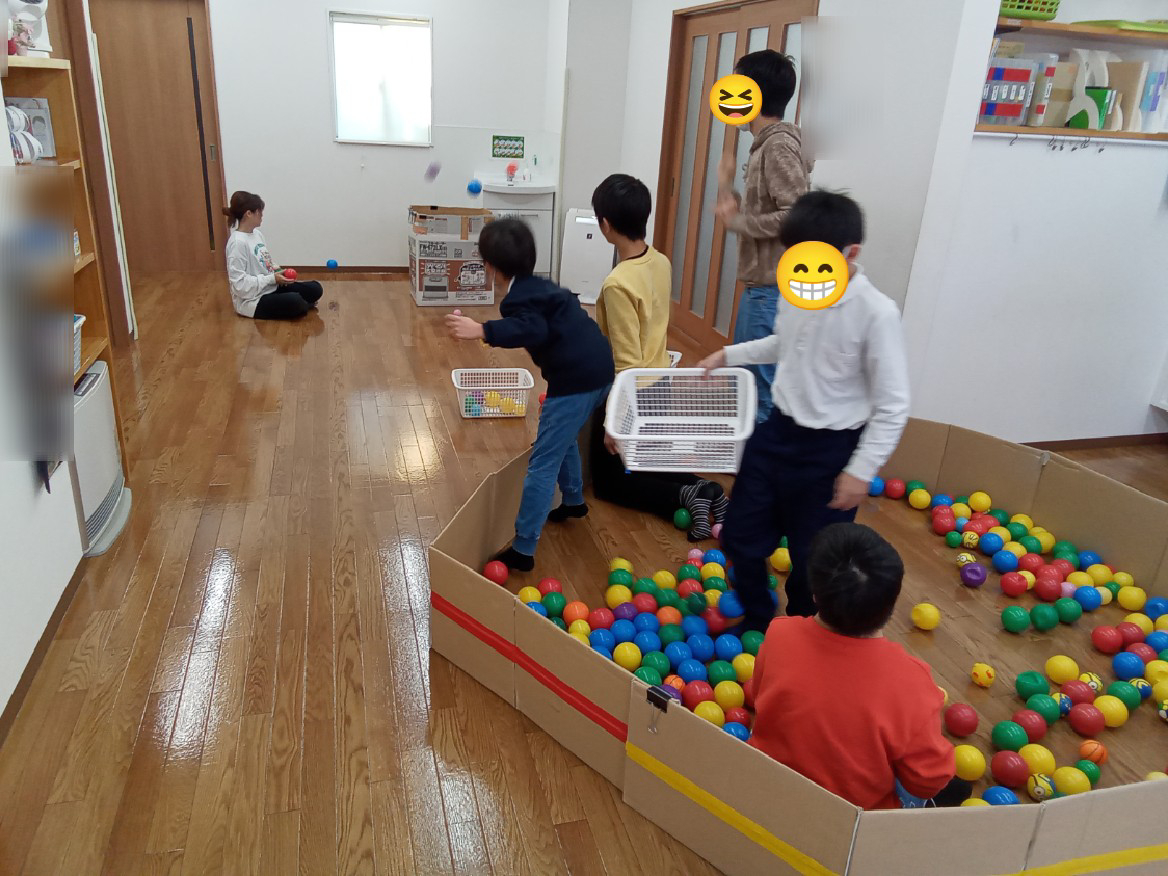 リクエスト活動~🔴🔘⚪とハンカチ落とし~ 日付: 12月 08, 2023 リクエスト活動では、ボールプールとハンカチ落としをしました。ボールプールでは、箱やかごに入るように力を調節しながら投げました。入ると「入ったね!☺️」と会話していました。 ハンカチ落としでは、静かに置いたり、持ってる素振りをしたりとバレないように工夫しながら、ハンカチを置きました。最後までニコニコで活動することができました✨ 自由時間には、「いれて」「いいよ」のやりとりで、仲良くボールをコロコロ転がしました➰➰🔴お友達と順番に、譲りながらボールを転がしました。